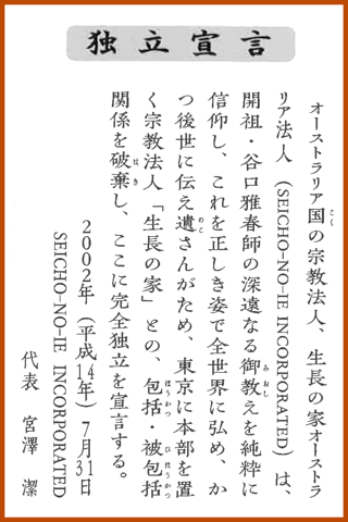 2007年12月 「生長の家オーストラリア法人」は「ときみつる會オーストラリア法人」と名称を変更。